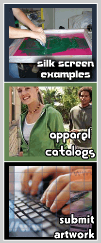 Our production specialists can handle spot color designs with up to six colors, simulated process prints, four color process prints, and special effects printing (glitter, puff print, glow in the dark, distressed prints, etc). Visit our Silk Screen Examples Gallery to see some of our most recent work. Have an idea? Our in-house artists can help turn your ideas into reality. Submit your request online and one of our artists will contact you. Need apparel? The online catalogs make choosing clothing easy. Can't find what you need? Give us a call at 1.888.219.0552 or email us at sales@paramountpromotions.net for assistance. |